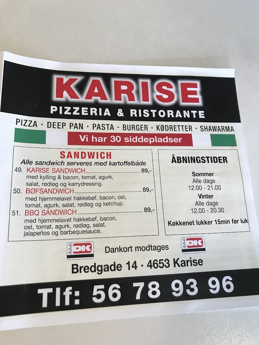 In conclusion, Karise Pizzaria Og Grill offers a well-rounded menu with something for everyone, whether you're in the mood for a classic pizza, a hearty grilled meal, or a fresh salad. The attention to detail and the use of fresh, high-quality ingredients ensure that each dish is both satisfying and delicious.